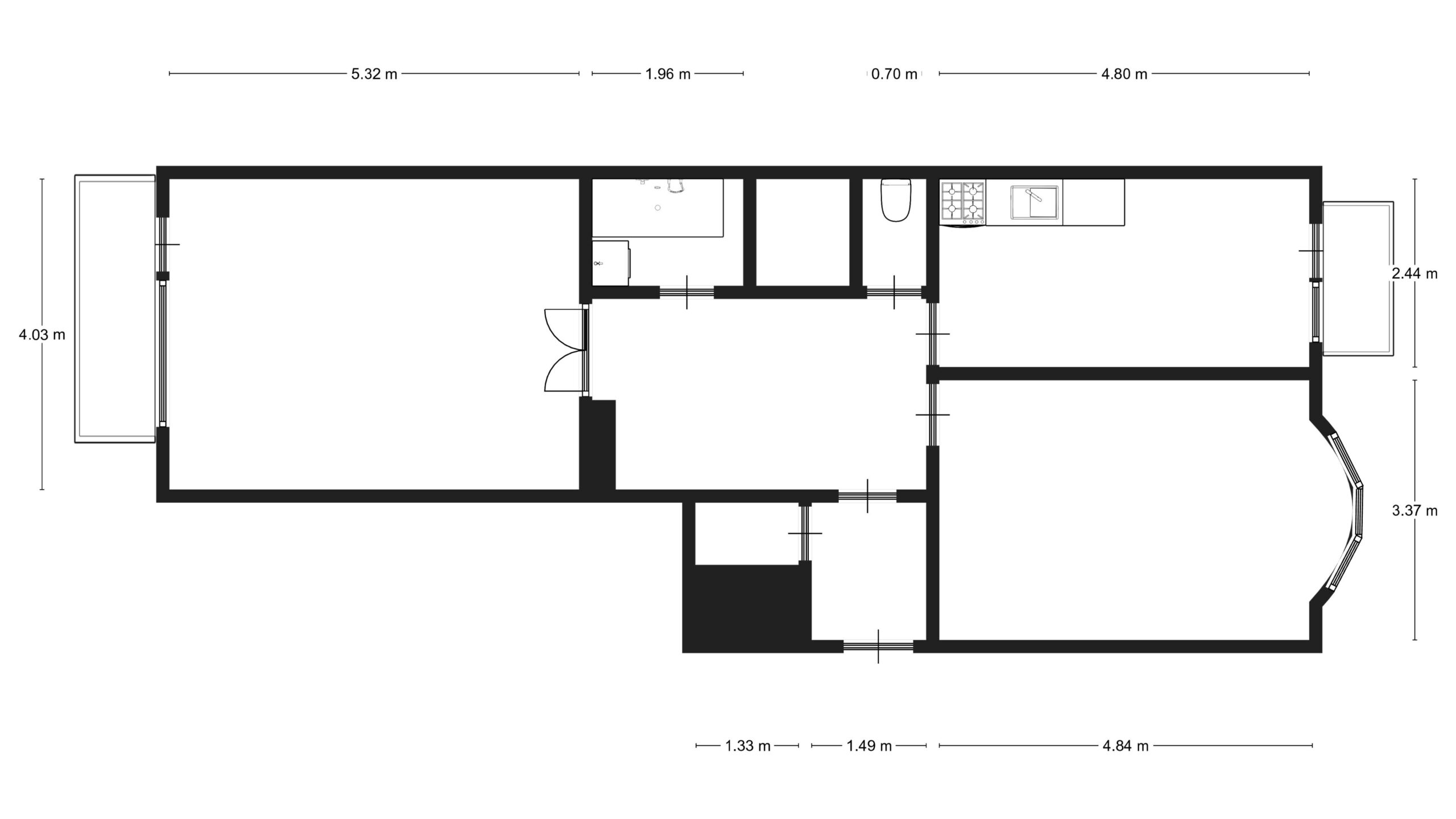 Byt je umístěn ve 2. nadzemním podlaží celkem 7. podlažního bytového domu. Nabízí klasickou dispozici 2+1. Kromě dvou pokojů je ve stávajícím řešení bytu ještě oddělené WC, koupelna a prostorná předsíň s komorou. Velkou výhodou jsou také dva balkóny, každý na jedné straně bytu. Byt je orientován na západ a východ a tak působí dostatečně světle a vzdušně. Jednotka je po částečné rekonstrukci, velmi pečlivě udržovaná a je možné ji okamžitě využívat. Původní a ceněné interiérové prvky jako dřevěné parkety na podlahách či dveře do pokojů a špaletová okna, to vše zůstalo zachováno a přináší to jedinečnou energii, a půvab. Vytápění a ohřev vody zajišťuje plynový kotel v bytě. Příslušenstvím bytu je i sklep v suterénu budovy.