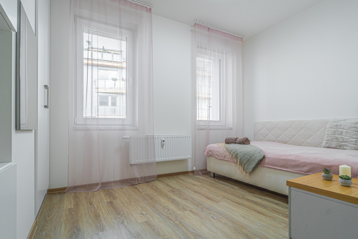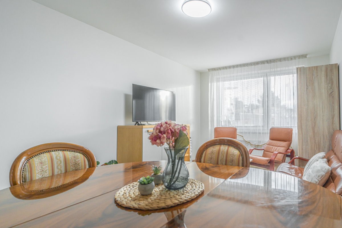 Předmětem prodeje je jednotka o klasické dispozici 3+1. Kromě tří samostatných a neprůchozích pokojů je v bytě samozřejmě i kuchyně s dostatkem prostoru i na jídelní stůl. WC je oddělené. V koupelně najdete vanu a také místo pro zapojení pračky. Díky vhodné orientaci je byt velmi světlý a vzdušný. Bonusem je hezká, zasklená lodžie. V suterénu je připravena praktická sklepní kóje. V bytovém domě jsou na patře vždy jen tři bytové jednotky. Tím je zaručeno klidné bydlení a soukromí.