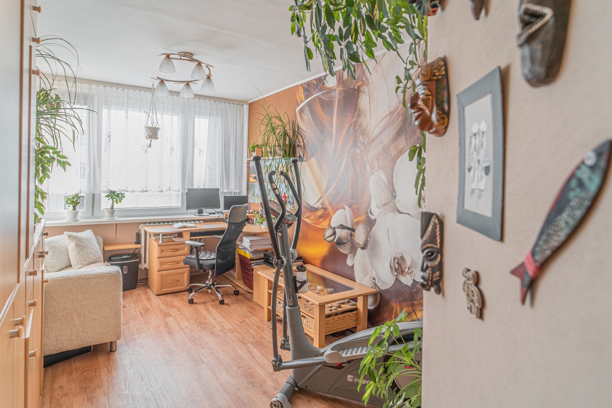 Byt se nachází v 2. nadzemním podlaží menšího a klidného panelového domu. Praktická dispozice nabízí z centrální chodby přístupné dvě neprůchozí ložnice, samostatnou koupelnu, WC, obývací pokoj a kuchyň. Z obývacího pokoje je vstup na zasklenou lodžií. Byt je ve výborném stavu. Před 10 lety prošel celkovou rekonstrukcí (bytové jádro, rozvody elektřiny, vody a odpadů v celém bytě) a tak jej nový majitel může okamžitě začít využívat bez dalších investic. Užitečná je šatna v jedné z ložnic a komora v předsíni. Další komoru pak máte přímo na chodbě před bytem a k tomu ještě prostorný sklep v suterénu domu.