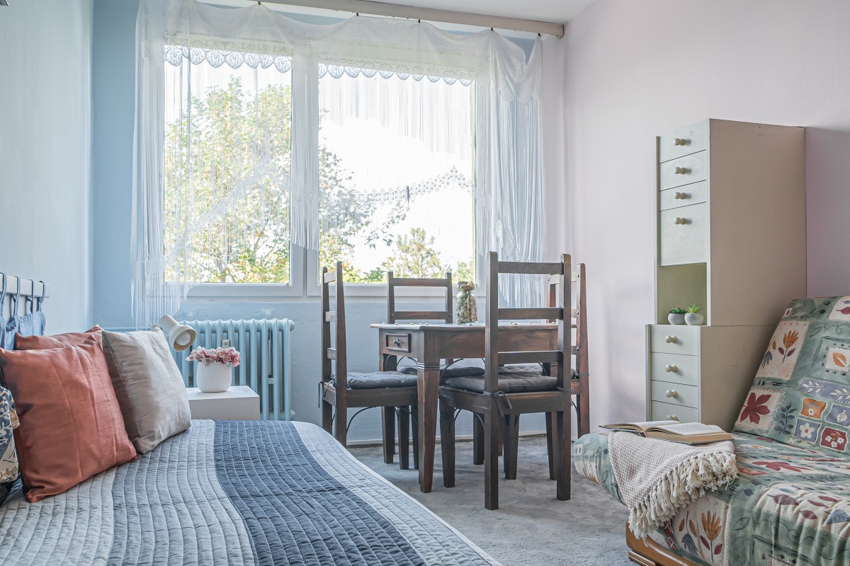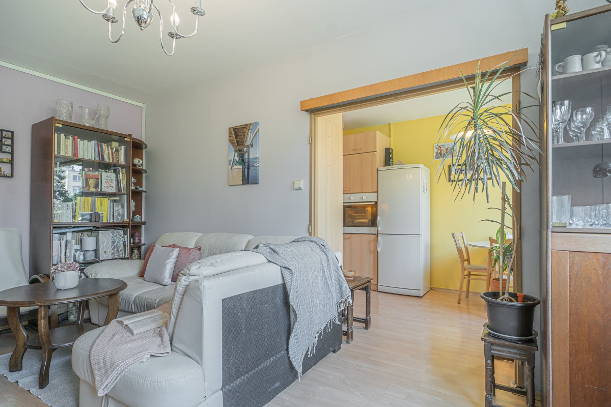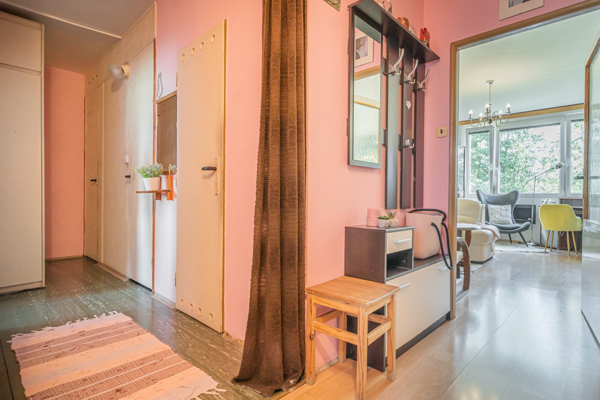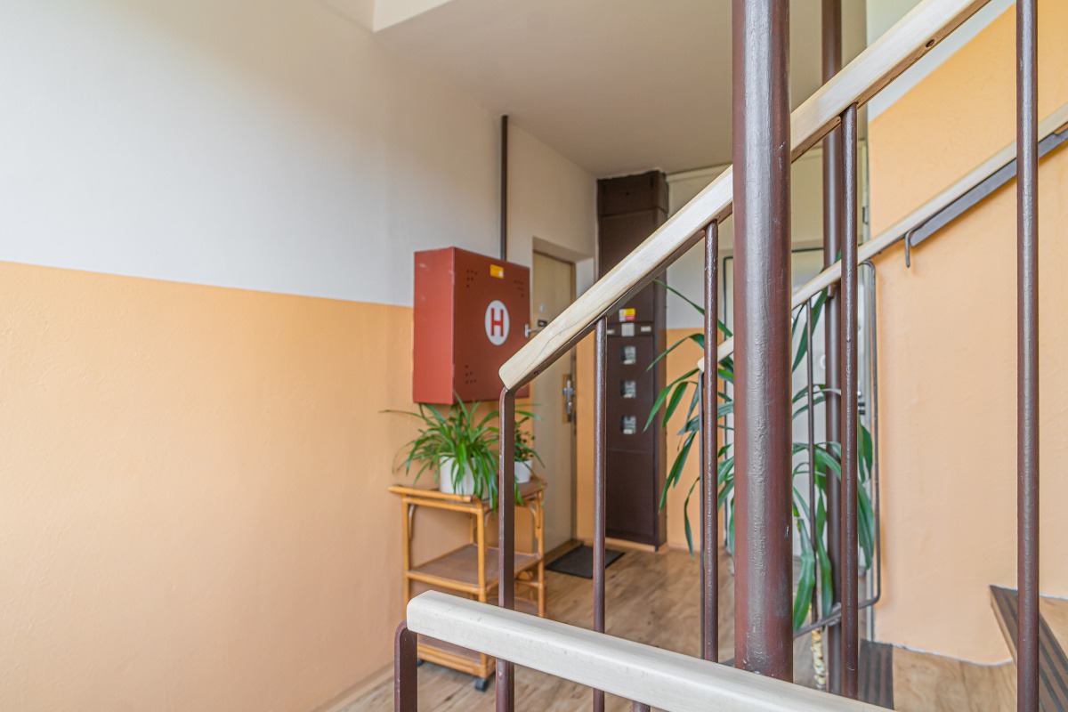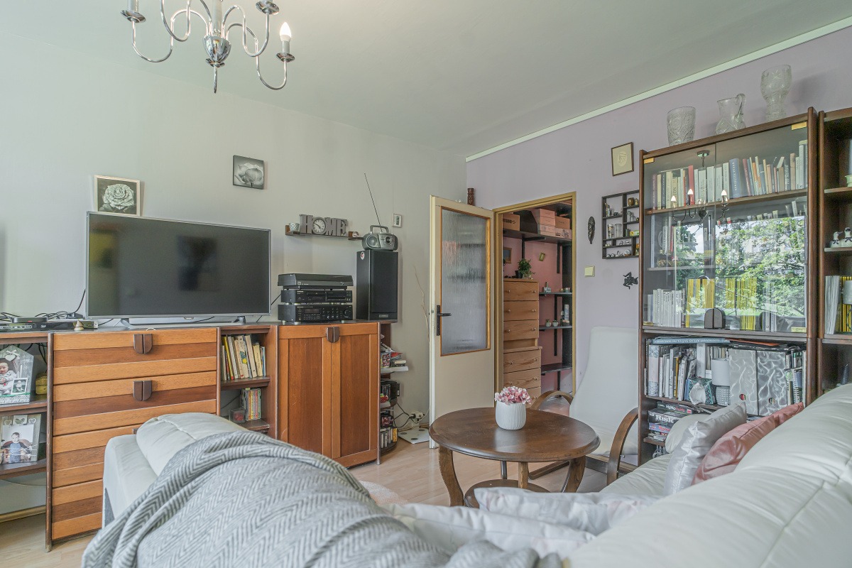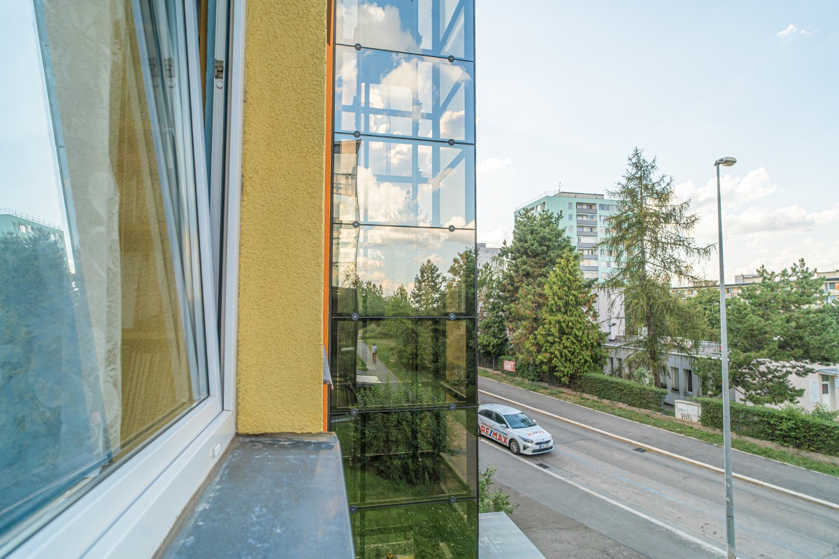 Oblíbená dispozice 3+1 nabízí dvě neprůchozí ložnice, samostatnou koupelnu, WC a komoru a obývací pokoj částečně spojený s kuchyní. Byt byl průběžně a pečlivě udržován a je možné jej okamžitě využívat. Na druhou stranu je v bytě ještě původní umakartové jádro, jehož rekonstrukcí posunete potenciál a využití bytu na vyšší úroveň. Kuchyň a obývací pokoj jsou orientovány na jih, ložnice pak na sever – ideální kombinace, kdy denní místnosti mají dostatek světla a naopak klidová část bytu je spíše ve stínu.