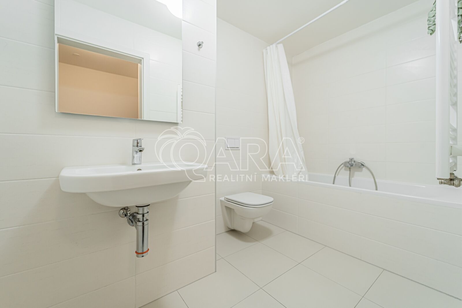 V koupelně (5 m²) se nachází vana a WC. Součástí ateliéru je také prostorná chodba (3,5 m²) a technická místnost s pračkou.