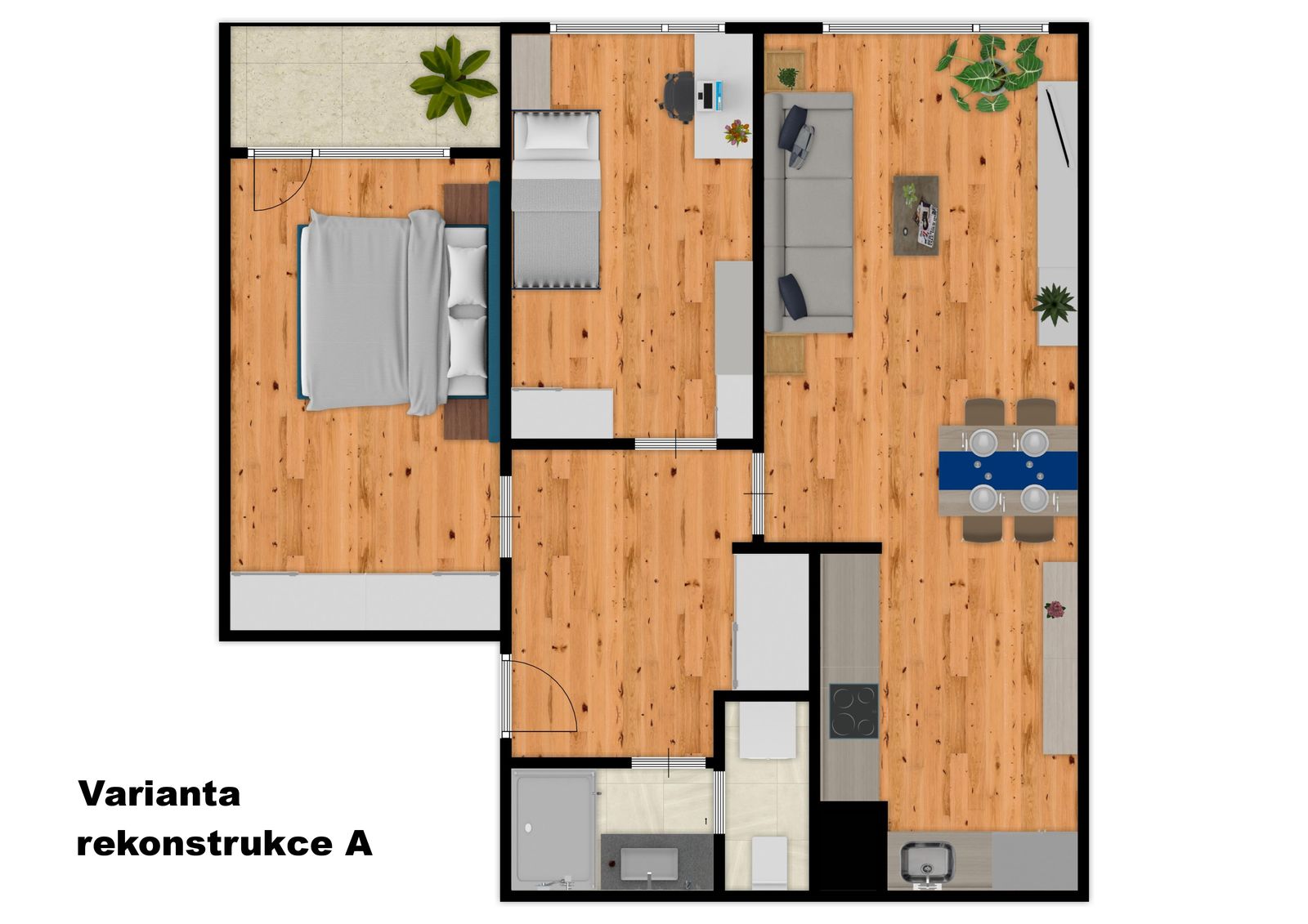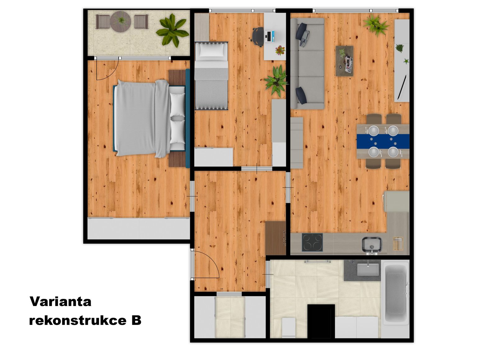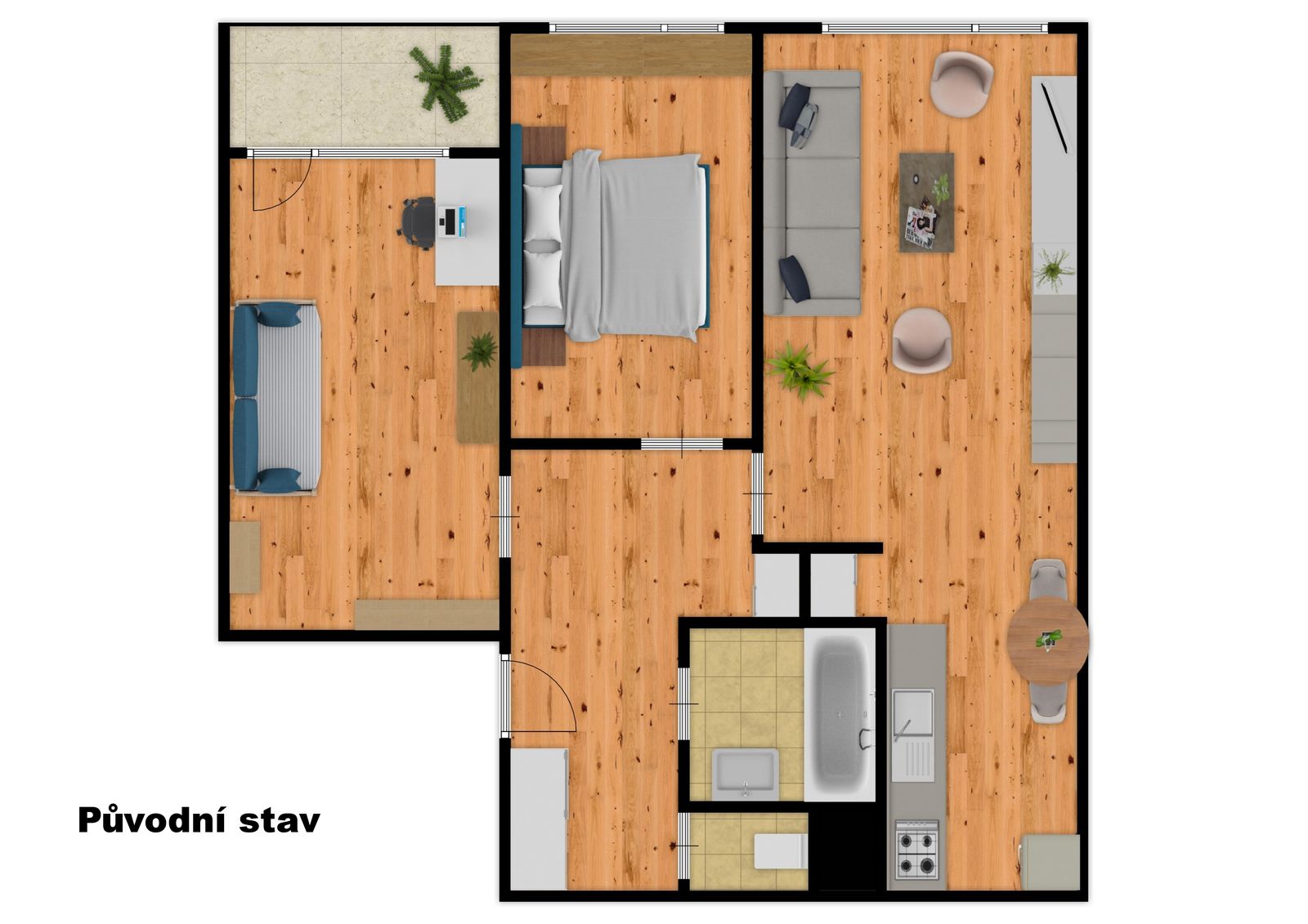 Být má výměru 63 m2 + lodžie (2,7 m2) a pěkný zděný sklep. Stav bytové jednotky je původní, ale udržovaný, a vhodný k rekonstrukci podle představ budoucího majitele. Byt má vzhledem ke své velikosti opravdový potenciál. Pro zájemce jsme připravili dvě varianty rekonstrukce.