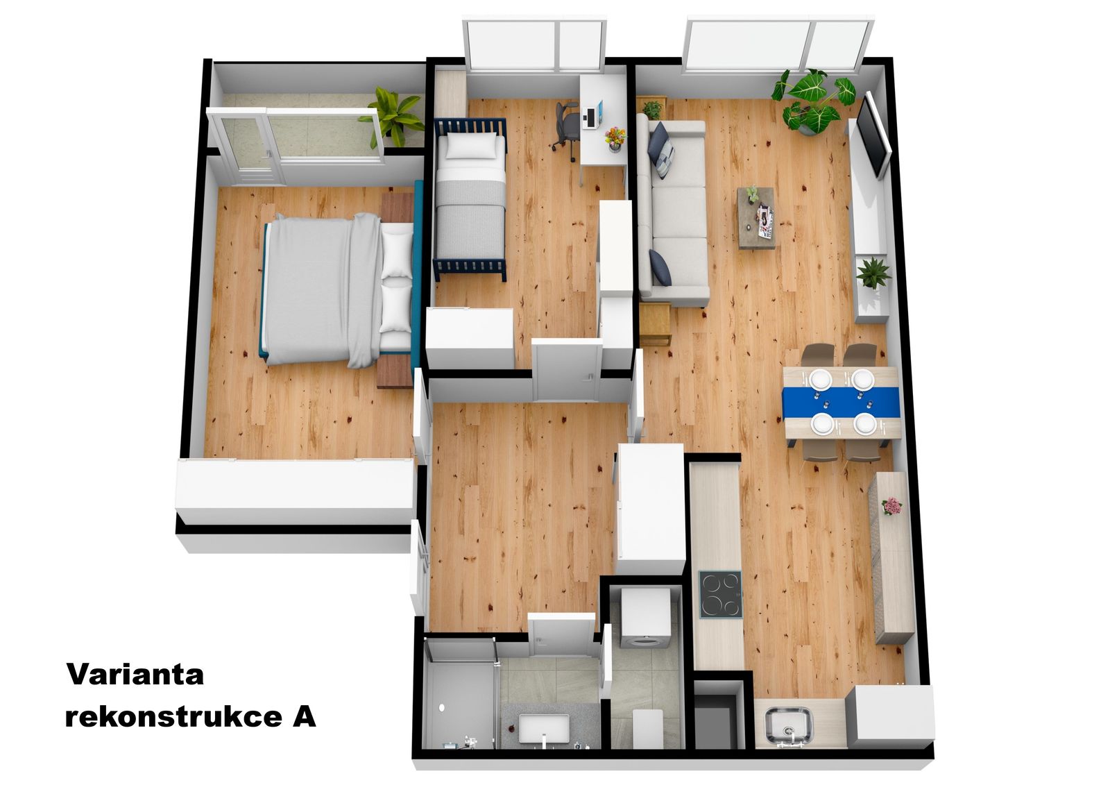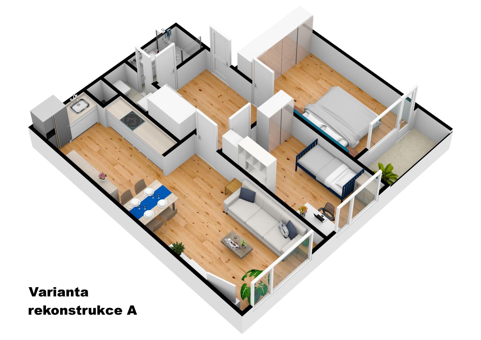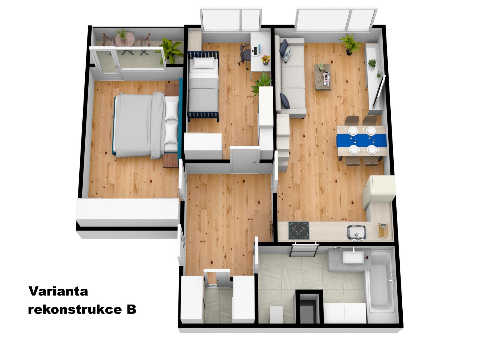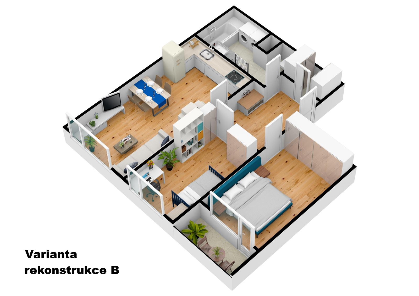 Být má výměru 63 m2 + lodžie (2,7 m2) a pěkný zděný sklep. Stav bytové jednotky je původní, ale udržovaný, a vhodný k rekonstrukci podle představ budoucího majitele. Byt má vzhledem ke své velikosti opravdový potenciál. Pro zájemce jsme připravili dvě varianty rekonstrukce.