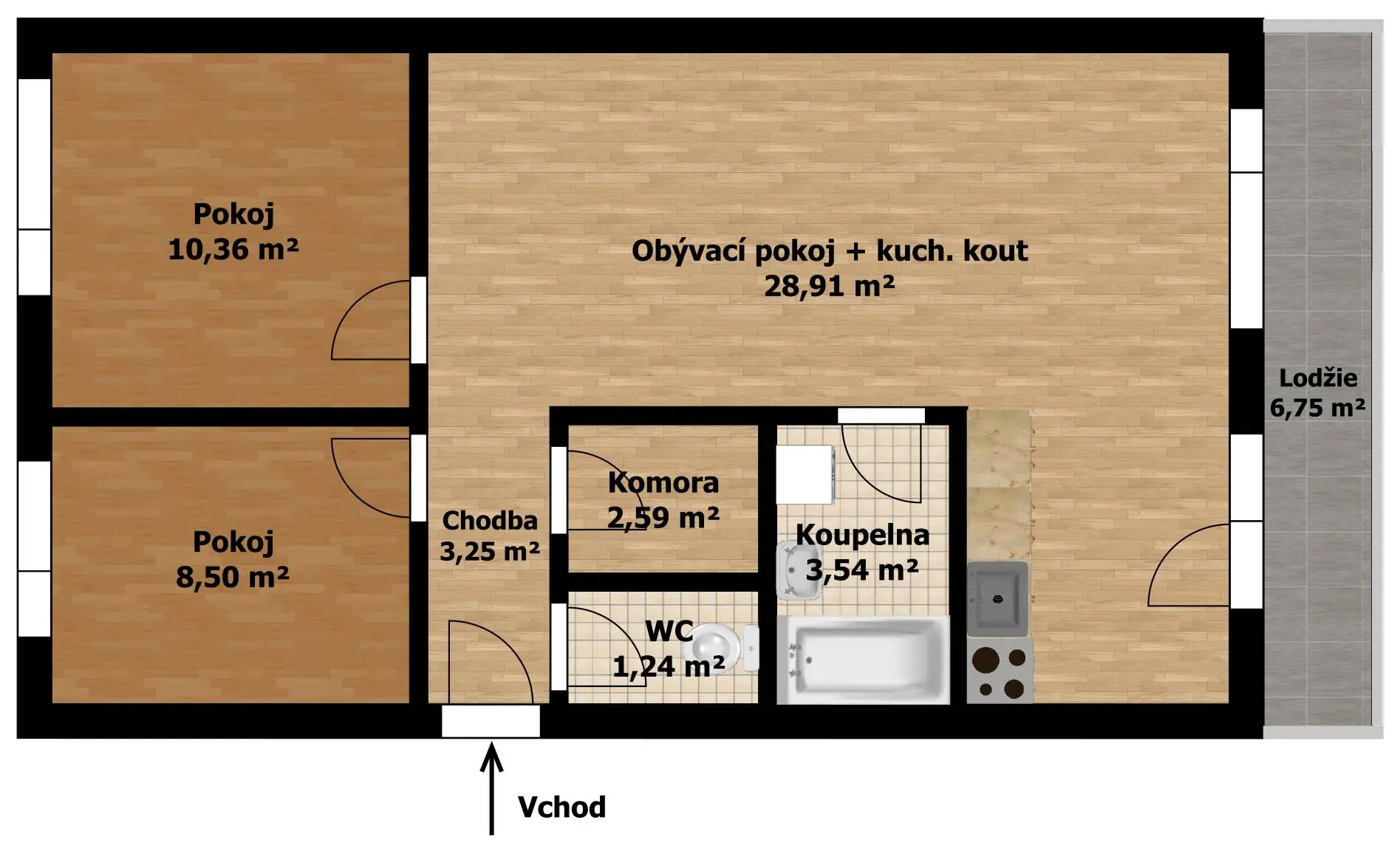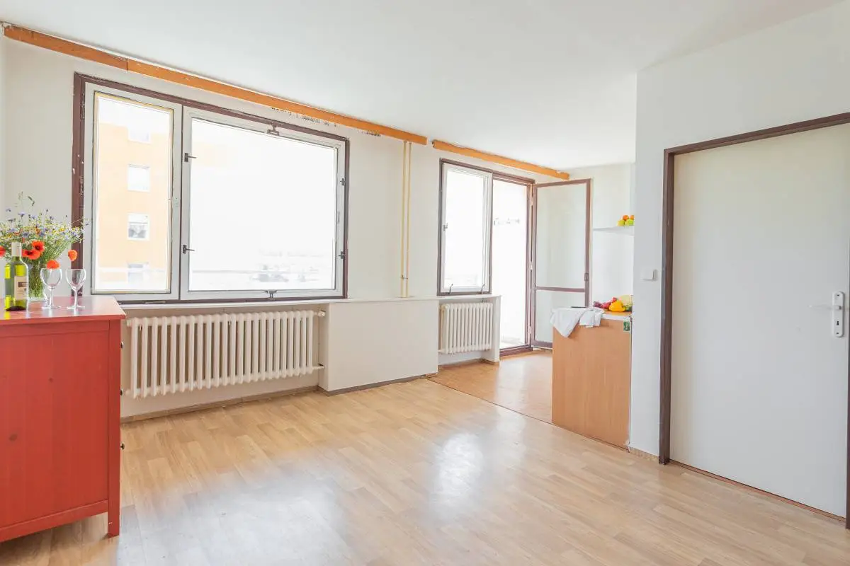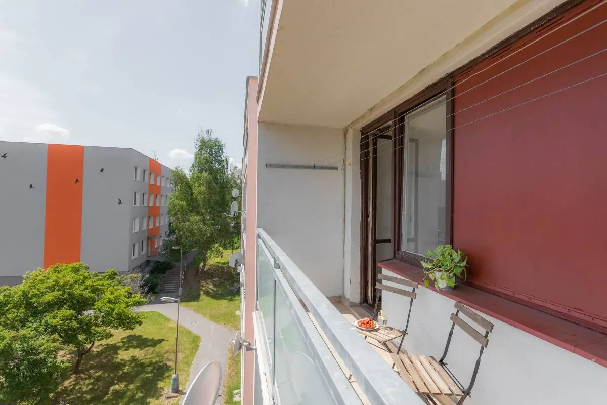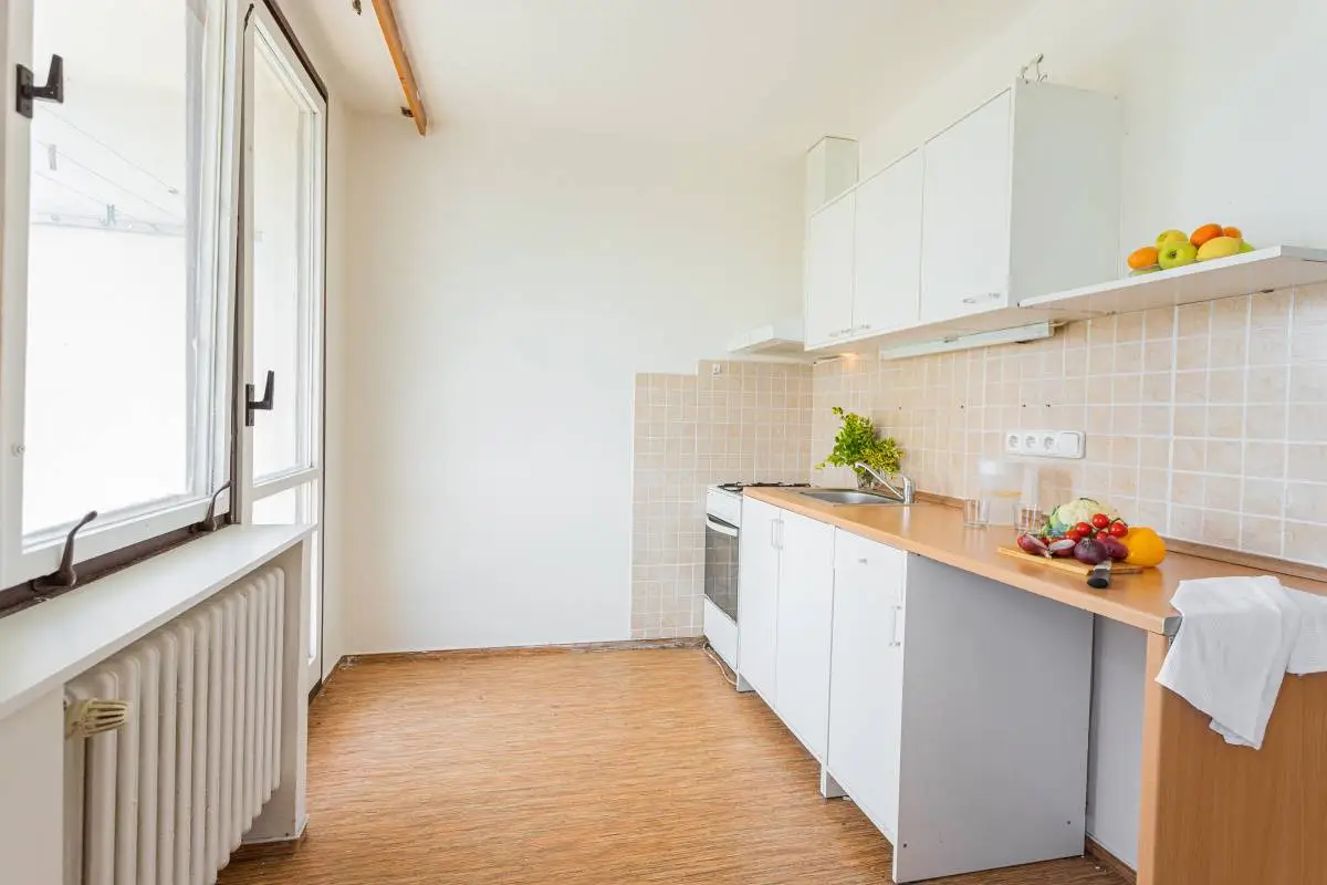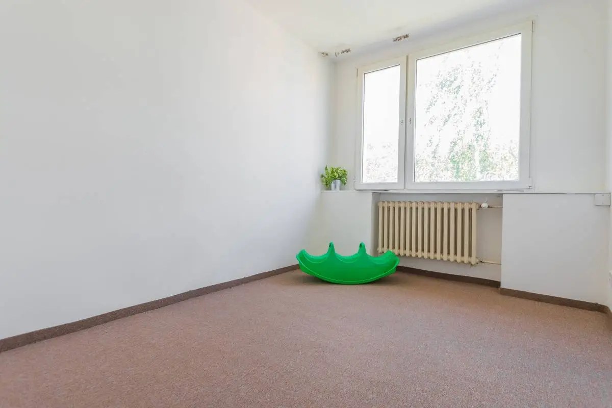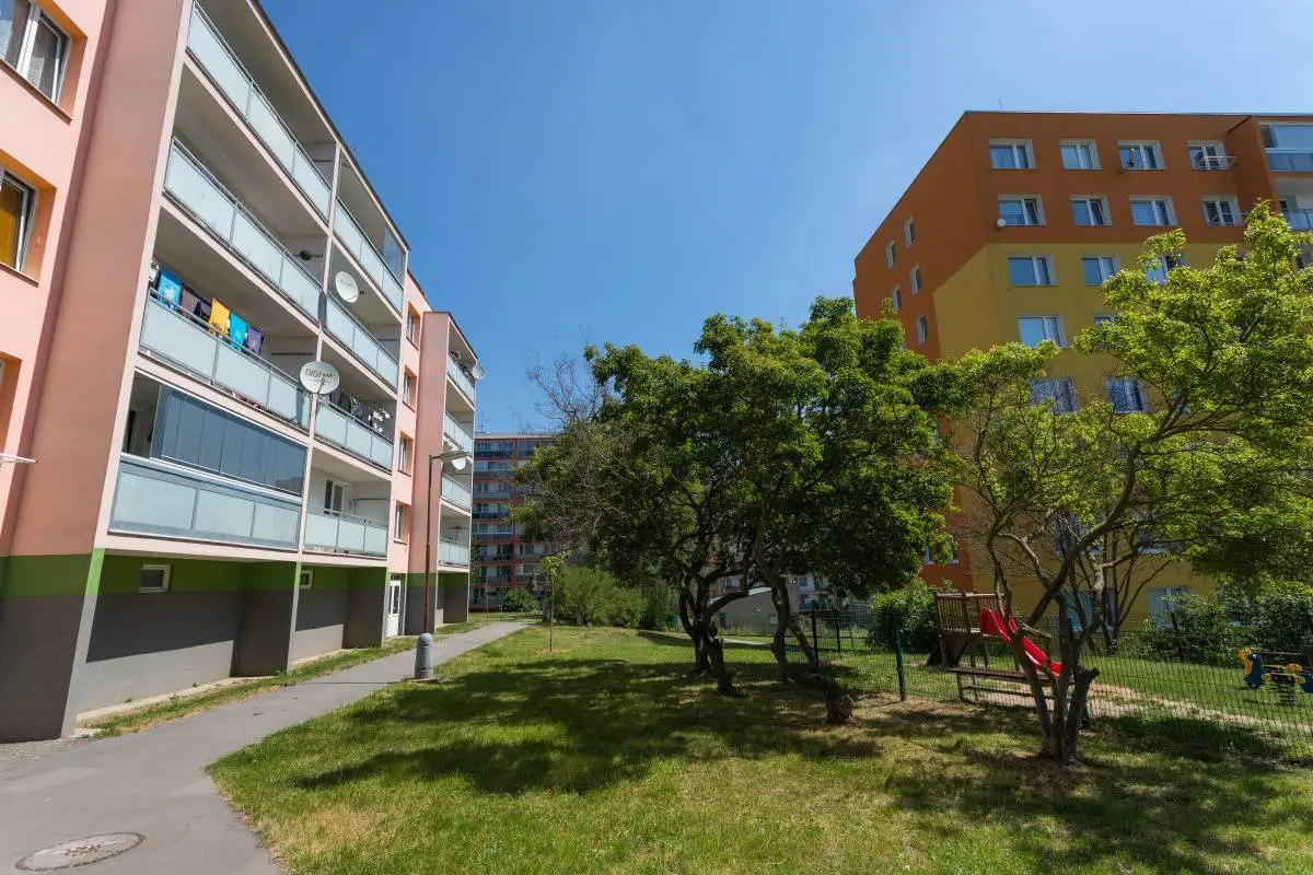 Bytová jednotka o dispozici 3+kk a výměře 60 m2 (+ lodžie) se nachází v druhém patře dobře udržovaného panelového domu a je po částečné rekonstrukci. V bytě byly vyměněny rozvody elektřiny, odpadů i vody. Praktická dispozice nabízí dva samostatné neprůchozí pokoje (orientované na severozápad) a prostorný obývací pokoj propojený s kuchyňským koutem (s výhledem na jihovýchod). Lodžie (6 m2) přístupná z obývacího pokoje i prostoru kuchyňského koutu umožňuje příjemné posezení s otevřeným výhledem na místní fotbalové hřiště. Koupelna disponuje prostornou rohovou vanou, WC je samostatně.